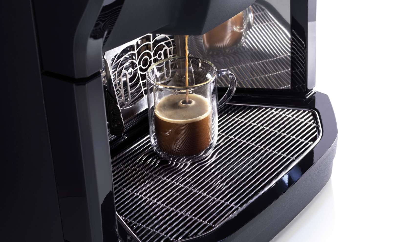 Die Maschine bereitet Espresso, Kaffee, Cappuccino, Latte Macchiato, Heißwasser und Schokolade zu – mit individuell anpassbarer Stärke und Füllmenge über den 10,1″ Touchscreen.