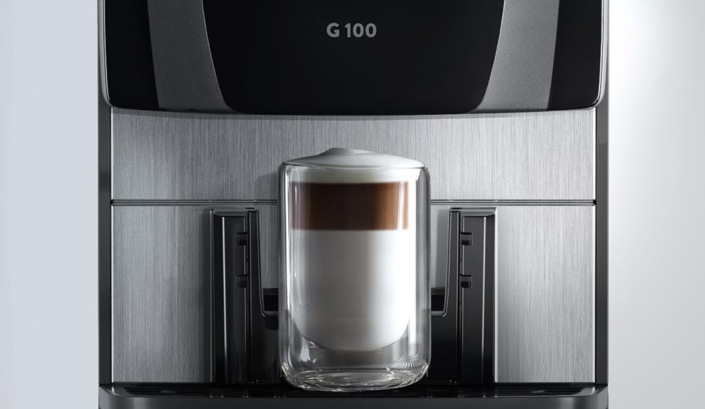 Die G 100 bereitet bis zu zwei Kaffeespezialitäten gleichzeitig zu – inklusive Milchgetränken mit Frischmilch oder Milchpulver. Die Bedienung erfolgt intuitiv über einen 7-Zoll-Touchscreen.